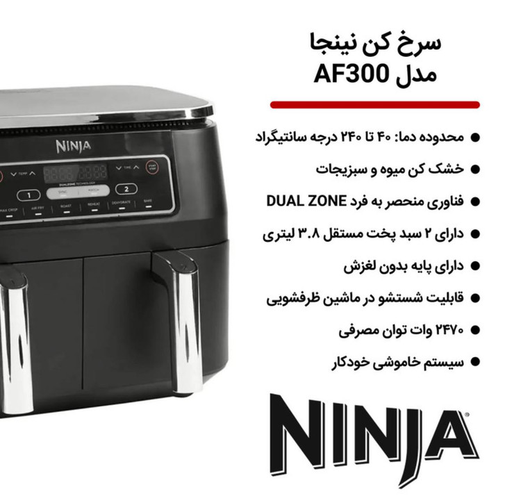 سرخ کن نینجا مدل AF300 دوقلو بدون روغن ظرفیت 7.6 لیتر